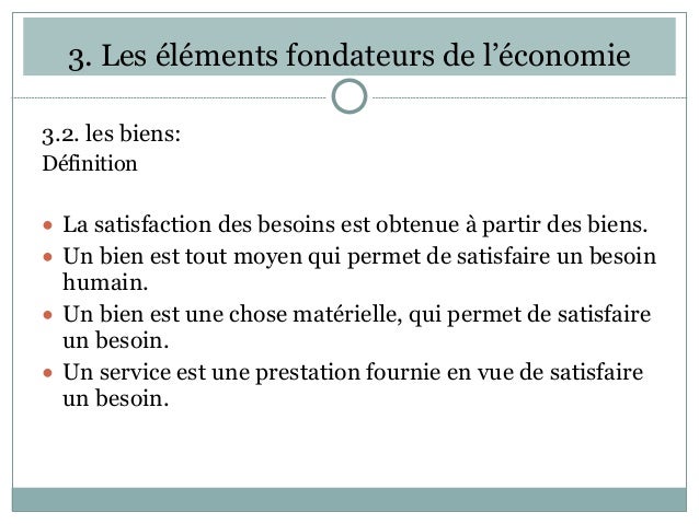 Un bien économique est un objet matériel produit par intervention de lhomme ou disponible spontanément dans la nature capable de satisfaire un besoin et disponible en quantité limitée. Il existe une infinité de biens économiques différents. Tout moyen capable de satisfaire un besoin.