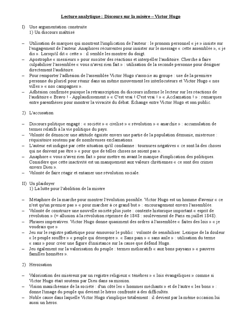Etude Du Discours Sur La Misere De Victor Hugo Documents Gratuits Littbac