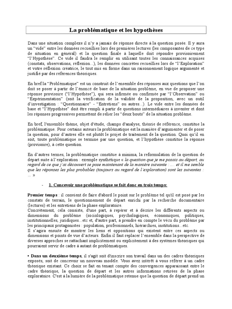 Ce sont les informations sur exemple de problematique et hypothese pdf que ladministrateur peut collecter. Il sagit dune ou de plusieurs phrases déclaratives. Rappel de la formation du futur.