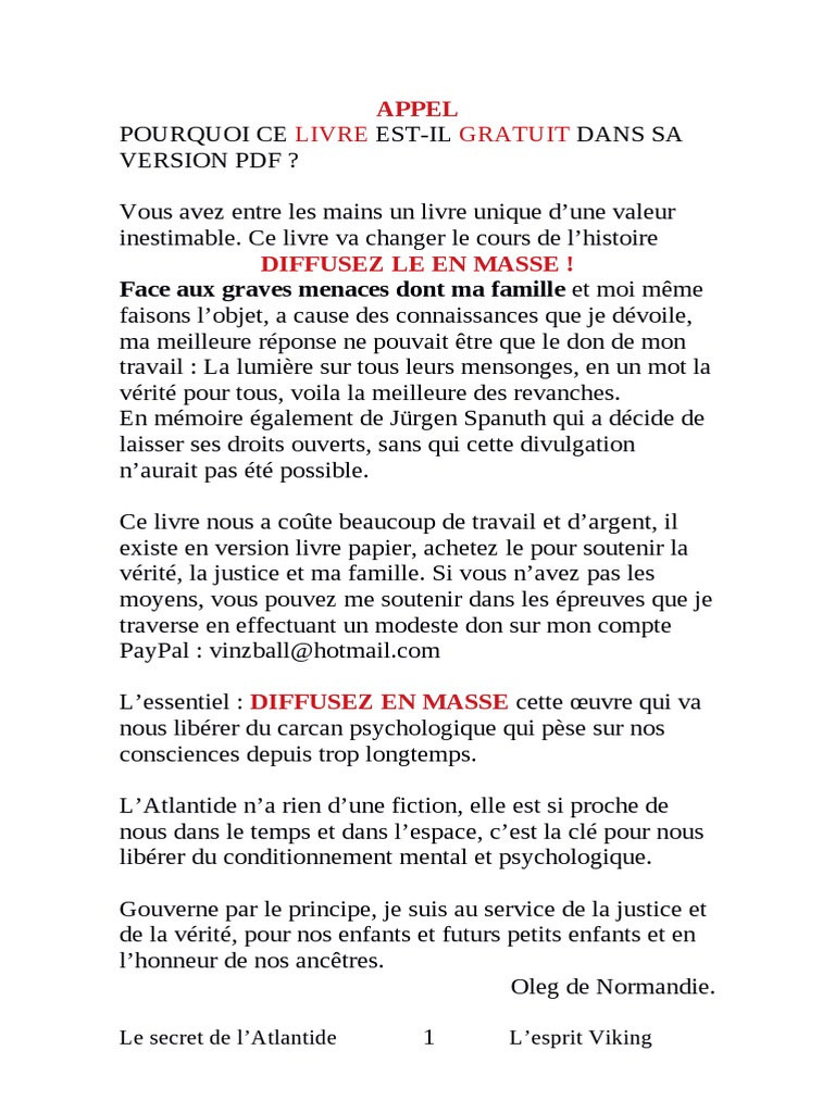 Le secret de lAtlantide aux éditions Lesprit Viking enrichi par Oleg de Normandie. 1976 Lien de téléchargement. Platon avait révélé le premier dans son célèbre Critias.