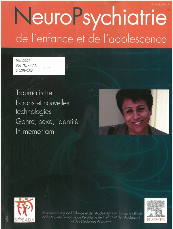 7-15 - La dysphorie de genre chez lenfant et ladolescent. Organ of the Société française de psychiatrie de lenfant et de ladolescent Neuropsychiatrie de lenfance et de ladolescence tackles all fields of child-adolescent psychiatry and offers a link between field and clinical work. Neuropsychiatrie de lenfance et de ladolescence est loutil de référence et de formation pour létudiant et le praticien.