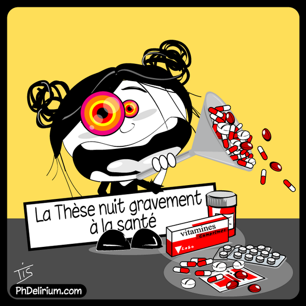 La thèse nuit gravement à la santé. La thèse nuit gravement à la santé. 2012 - Les PhD Pharma se révoltent contre les stéréotypes qui leur collent à la peau cf dessin et contre lamalgame que lon peut faire entre le PhD en pharma et le PharmaD.